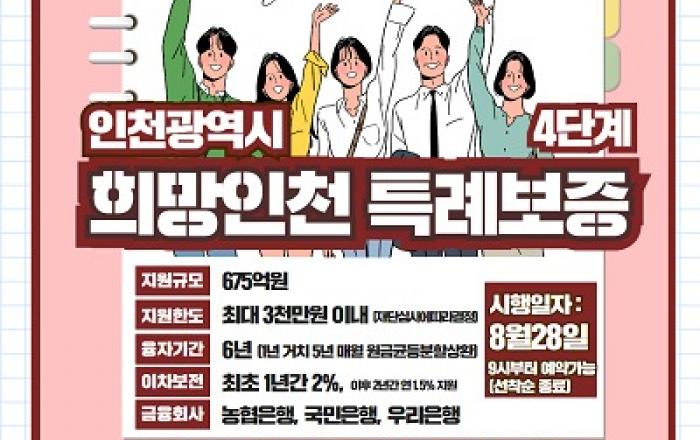 인천광역시는 고금리 및 고물가 속에서 극심한 경영난을 겪고 있는 소상공인을 지원하고자 675억 원 규모의 ‘2023 희망인천 소상공인 경영안정자금(4단계)’ 접수를 8월 28일부터 시작한다. 인천시는 지난 4월부터 1~3단계 희망인천 소상공인 경영안정자금 925억 원