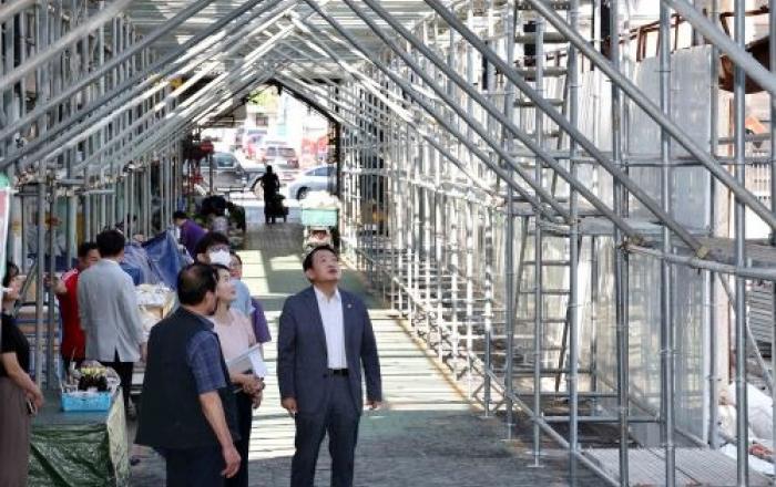 김찬진 인천 동구청장은 지난 17일 현대시장을 방문, 올해 3월 방화로 화재 피해를 입은 아케이드 복구 현장을 점검했다.김찬진 동구청장은 “복구공사로 인한 안전사고가 발생하지 않도록 각별한 주의를 기울여 달라”며 “상인들이 만족할 수 있는 하자 없는 완벽한 시공을 부탁