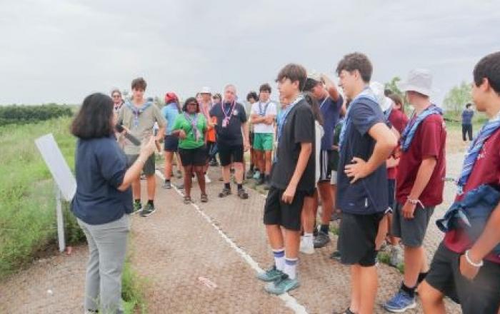 2023 새만금 세계스카우트잼버리에서 조기 퇴영해 인천에 머무는 이탈리아 대표단 200명이 지난 9일 수도권매립지를 견학하고, 공사에서 마련한 환경교육프로그램에 참여했다. 인천 청라국제도시 숙소에서 이동해 공사 홍보관에 도착한 대표단은 조별로 수도권매립지 매립장 투어와