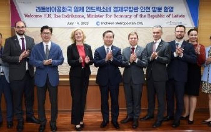 인천광역시 유정복 시장은 14일 라트비아공화국 경제부장관 일제 인드릭소네(Ilze Indriksone)를 비롯한 기업사절단이 인천을 방문해 유정복 시장을 면담하고 인천시 전략산업에 대한 협력관계 활성화 방안 등에 대해 논의했다고 밝혔다.라트비아 정부 인사의 인천방문은