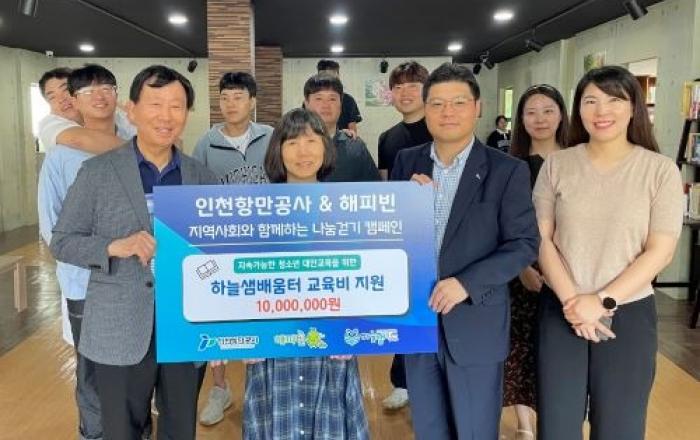 [사진제공 = 인천항만공사]인천항만공사(사장 이경규)는 탄소발자국을 줄이고 지역사회 나눔 문화를 실천하기 위해 진행한 ‘제3회 나눔걷기 캠페인’을 마치고 인천지역 청소년 위탁형 대안학교 ‘하늘샘배움터’에 기부금 1천만 원을 기부했다고 10일 밝혔다.올해로 3회차를 맞이