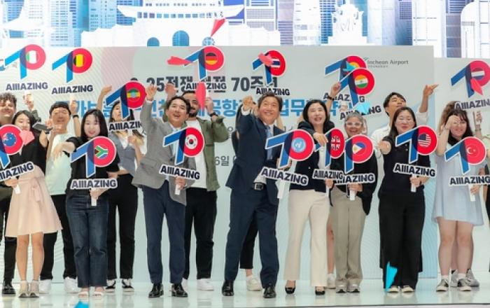인천국제공항공사는 6일 국가보훈부와 인천공항 제1여객터미널 밀레니엄홀에서 '정전 70주년 기념 보훈 문화 확산 상호 협력을 위한 업무협약(MOU)'을 체결했다고 밝혔다. 이날 업무협약식에는 인천국제공항공사 이학재 사장, 국가보훈부 박민식 장관을 포함해 유엔참전용사