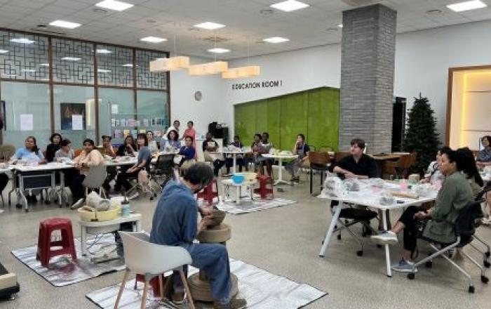 인천경제자유구역청은 오는 17일까지 글로벌센터에서 3차례에 걸쳐 거주 외국인들을 대상으로 녹청자 도예 강좌를 실시한다고 4일 밝혔다. 이와 관련, 지난 3일 인천 공예 명장이자 한국 전통 공예 녹청자 명장인 김갑용 도예가가 강의를 맡아 외국인들에게 역사를 알리고 이들과