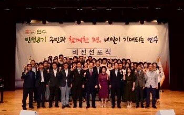연수구 이재호 구청장은 지난 3일 구청 연수아트홀에서 민선8기 이재호 연수구청장 취임 1년을 맞아 지난 성과와 재정혁신 과정 등을 공유하고 연수구의 나아갈 미래를 제시하는 비전선포식을 개최했다. 이날 비전선포식은 보훈단체 관계자 등 내·외빈이 함께 민선8기 구청장 취임
