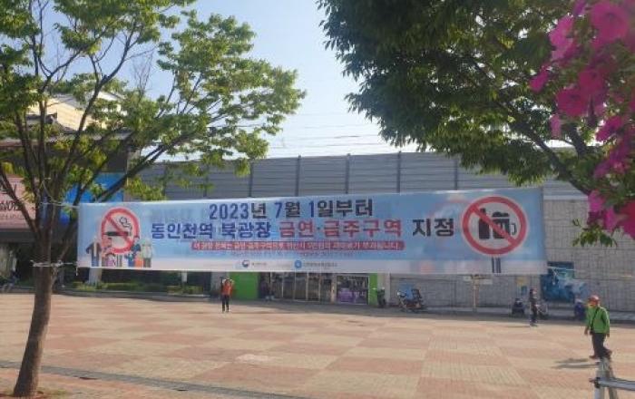 인천 동구 김찬진 구청장이 노숙·주취자들로 민원이 끊이지 않았던 동인천역 북광장을 금연·금주구역으로 지정 고시했다.이에 따라 7월 1일부터 6개월간 계도기간을 거친 뒤 내년 1월 1일부터 흡연 및 음주행위 적발시 5만원의 과태료를 부과할 방침이다.구는 계도기간 중 금연