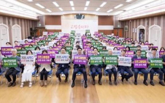 인천 서구(구청장 강범석)가 지난 3일 직원 월례조회에서 ‘2025 APEC 정상회의, 인천고등법원, 해사전문법원 인천 유치’에 전 직원이 나서 지지선언을 하고 동시에 100만 서명운동에 적극적으로 동참하겠다고 밝혔다. 강범석 서구청장은 이 자리에서 “인천시는 20