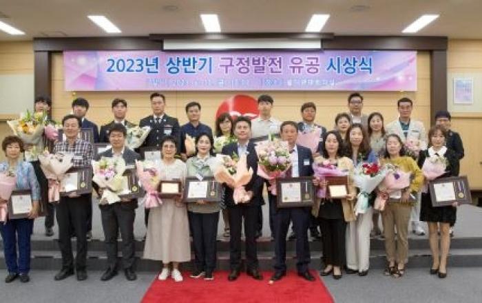 인천시 중구 김정헌 구청장이 지난달 30일 중구청 월디관 대회의실에서 ‘2023년 상반기 구정발전 유공 시상식’을 개최했다고 밝혔다. 김정헌 구청장은 중구 곳곳에서 구정발전과 구민의 복리 증진을 위해 헌신한 주민 및 단체, 유관기관 직원 등 총 21명에게 표창장 및