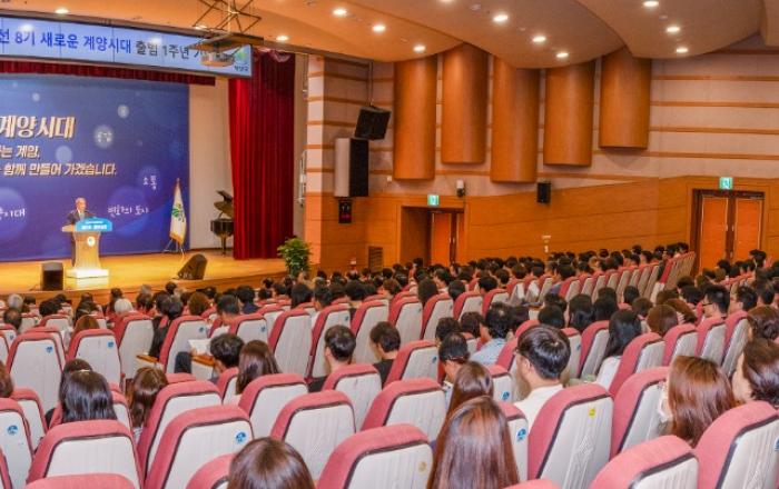 인천광역시 계양구(구청장 윤환)는 3일 오전 구청 대강당에서 소속 직원, 사회단체장 등 360여 명이 참석한 가운데 민선 8기 출범 1주년 기념식을 개최했다.기념식은 구립여성합창단의 축가를 시작으로 구정발전 유공자 표창, 기념사, 구정 운영성과 영상, 성악가 축하공연,