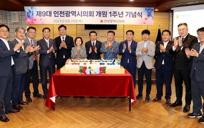 제9대 인천광역시의회 허식 의장은 개원 1주년을 맞아 지난 1년을 되돌아보고 의회 구성원 간 격려와 미래 비전을 공유하며 시민행복을 구현하는 선진의회로 도약하기 위한 재다짐의 시간을 가졌다. 인천시의회는 29일 샤펠드미앙에서 허식 의장 등 40명 시의원, 이행숙
