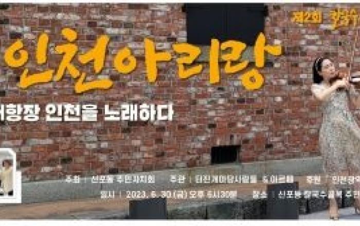 신포동주민자치회는 오는 30일 오후 6시 30분 신포동 칼국수 골목 주민복합문화공간에서‘제2회 칼국수 골목 터진개마당 축제’를 개최한다. 이날 행사는 ‘개항장 인천을 노래하다-다시 부르는 2023 인천 아리랑’이라는 주제로 신포동 주민자치회 주최, 터진개마당 사람들 &