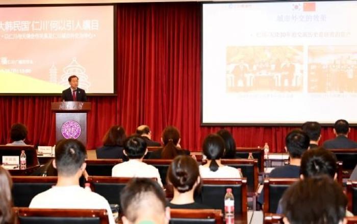 유정복 시장 난카이대학 특별강연 [사진출처=인천시]중국을 방문 중인 유정복 인천광역시장이 한·중·일 지방정부가 동북아시아의 미래를 위해 서로 협력하고 교류할 수 있도록 한·중·일 3국 지방정부의 지사·성장회의를 제안했다.유정복 시장은 6월 29일 중국 5대 명문대학인