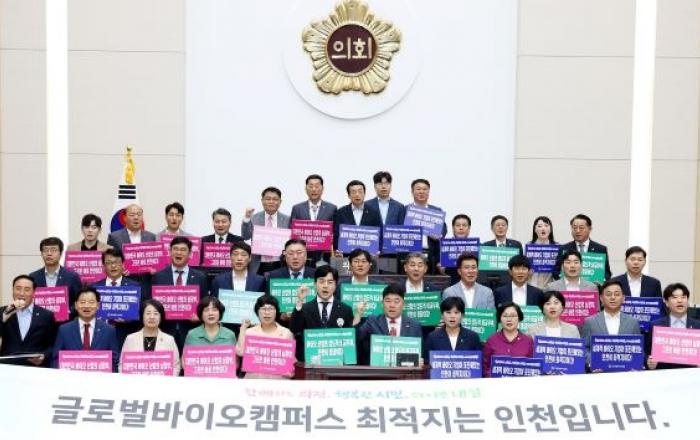 인천광역시의회가 글로벌 경제위기 속에서 대한민국 바이오 산업과 세계 바이오 인력 양성의 메카로 도약할 글로벌 바이오 캠퍼스 인천 유치전에 발 벗고 나섰다. 인천시의회는 27일 ‘제288회 제1차 정례회’ 제4차 본회의 종료 후 의회 본회의장에서 허식 의장을 비롯해