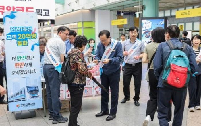 인천교통공사는 인천도시철도 1호선이 누적 수송인원 20억 명을 돌파했다고 밝혔다.1999년 개통 이래 23년 8개월 만의 기록이다. 앞서 인천도시철도 1호선은 개통 13년만인 2013년 누적 수송인원 10억 명을 기록했고, 그로부터 10년만인 2023년에 20억 명을