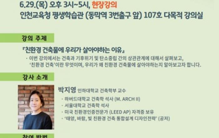 인천광역시(시장 유정복)는 ‘인천의 에너지자립형 친환경 건물 확대’추진을 위한 제40차 인천녹색기후아카데미를 29일 오후3시부터 인천광역시교육청 평생학습관에서 개최한다고 밝혔다.인천시는 지난해 12월 정부의 국가온실가스 감축목표(NDC)보다 5년 앞당긴 ‘2045 인천
