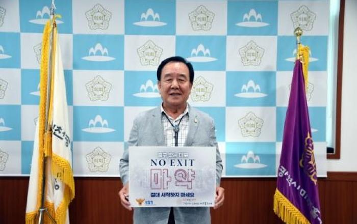 배상록 인천시 미추홀구의회 의장이 23일 마약범죄 예방 ‘노 엑시트(NO EXIT)’릴레이 캠페인에 동참했다. 경찰청과 한국마약퇴치운동본부가 주관하는 해당 캠페인은 ‘출구 없는 미로, 마약 절대 시작하지 마세요’라는 문구와 함께 마약에 대한 국민적 경각심을 일깨우는 예