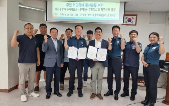 부평구 부개1동 주민자치회는 지난 21일 동 행정복지센터에서 인천삼산서 부개파출소와 주민 치안참여 활성화를 위한 업무협약서를 체결했다. 이들은 이번 협약을 통해 부개1동 범죄예방을 위한 공동체 치안을 내실 있게 추진, 안전한 지역을 조성하는 데 힘을 모으기로 했다