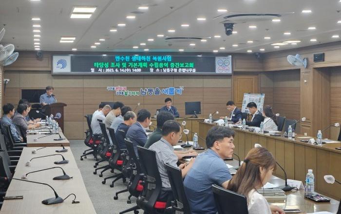 인천시 남동구는 최근 구청 은행나무홀에서 ‘만수천 생태하천 복원사업 타당성 조사 및 기본계획 수립 용역’ 중간보고회를 개최했다고 밝혔다. 보고회는 박종효 구청장을 비롯해 지역 주민과 구의원 등 30여 명이 참석한 가운데 만수천 일원의 현황조사, 기본설계(안), 만수천