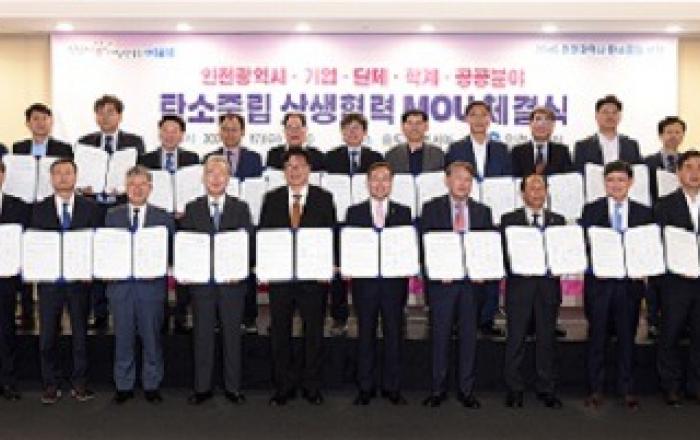 수도권매립지관리공사는 17일 인천 송도컨벤시아에서 인천시를 비롯해 인천 대표 기업, 단체, 학계, 공공기관 등 총 35개 기관과 ‘탄소중립 실현을 위한 민·관·산·학 탄소중립 상생협력 업무협약’을 체결했다.이날 행사에는 이규성 수도권매립지관리공사 사장 직무대행, 유정복