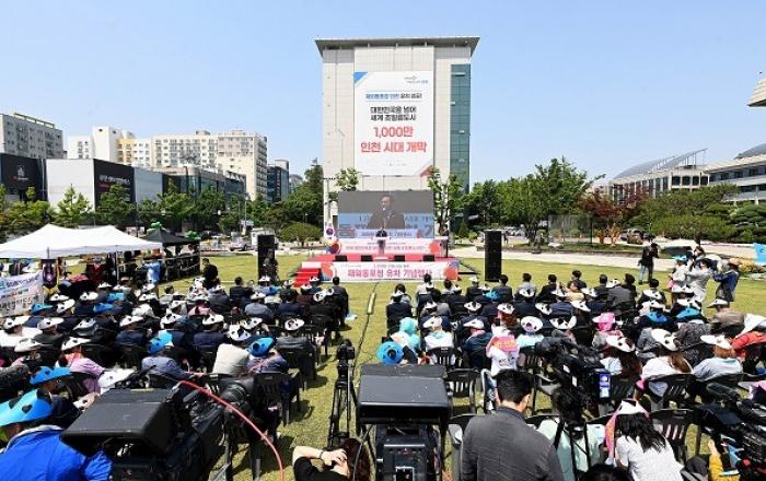 재외동포청 인천 유치에 온 힘을 모은 지역사회가 천만 인천시대 개막을 축하했다.인천광역시(시장 유정복)는 5월 16일 시청 애뜰광장에서 인천시민, 여야 국회의원, 인천시 의회, 군·구, 교육청 등 한마음으로 재외동포청 유치를 염원해준 지역사회와 함께 축하의 자리를 마련