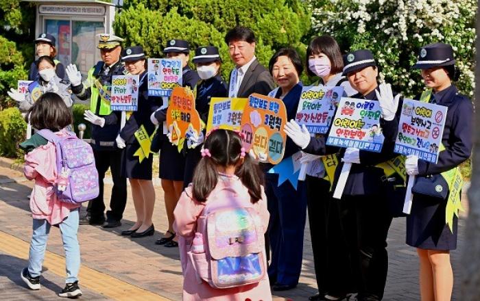 부평구 차준택 구청장은 9일 산곡남초등학교에서 스쿨존 민·관 합동 교통안전캠페인을 진행했다. 이날 캠페인은 부평구청과 부평구의회, 부평녹색어머니연합회, 부평모범운전자회, 부평경찰서 등 40여 명이 참여해 개인형 이동장치의 2인 이상 탑승금지, 이륜차 이상 면허 필수,