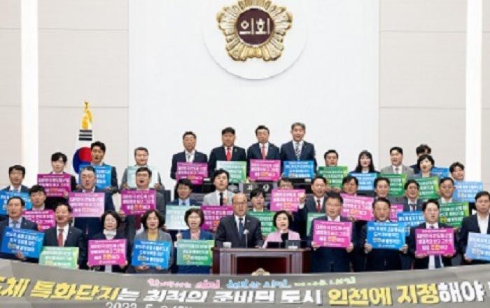 인천광역시의회가 글로벌 경제위기 속 대한민국 미래 먹거리를 책임질 반도체 산업의 특화단지 인천 유치에 발 벗고 나섰다. 인천시의회는 ‘제287회 임시회’ 제1차 개회일인 9일 의회 본회의장에서 본회의 종료 후 허식 의장 등 시의원 전원이 참석한 가운데 결의대회를 열