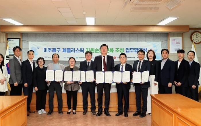 인천 미추홀구는 3일 인하대학교, 롯데알미늄, 롯데케미칼, 인천환경운동연합, AO2와 함께 미추홀구 폐플라스틱 자원순환 문화 조성을 위한 업무협약을 체결했다고 밝혔다.이번 협약을 통해 주민들의 자원순환 인식개선을 위한 정책 및 협약 전반적인 관리, 라스틱 에코서클 앱