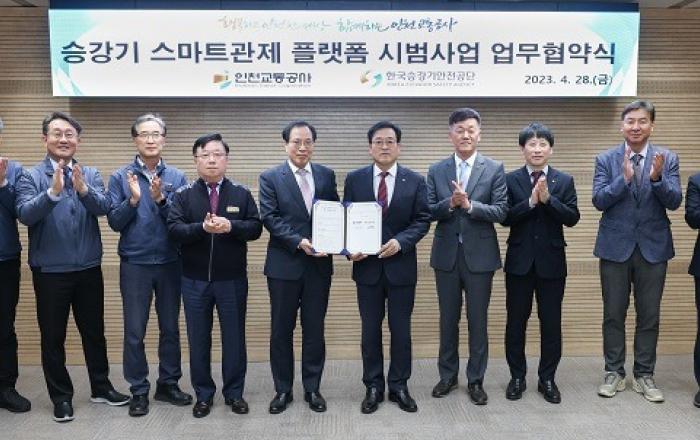 인천교통공사 김성완 사장은 28일 한국승강기안전공단과 승강기 사고예방 및 체계적인 안전관리를 위한 ‘승강기 스마트관제 플랫폼 구축 시범사업 업무협약’을 체결했다고 밝혔다.이번 협약은 인천교통공사 승강기를 이용하는 시민의 안전확보 및 지능형 승강기 스마트 관리를 위한 양