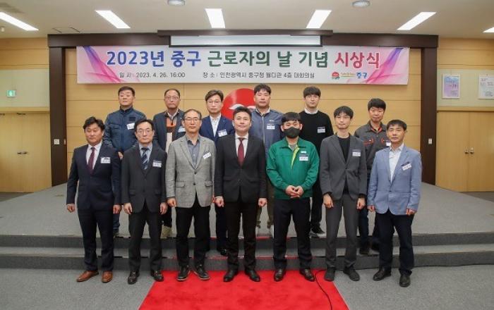 김정헌 인천 중구청장은 ‘근로자의 날’을 맞아 노동환경 개선에 힘쓴 공로자를 격려하고, 노사 상생 문화 정착을 위한 소통 행보에 나섰다. 지난 26일 오후 중구청 월디관 대회의실에서 김정헌 구청장, 근로자, 노동조합 간부, 기업체 대표 등이 참석한 가운데 ‘2023년
