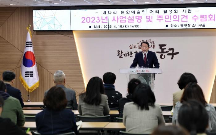 인천 동구 청장 김찬진은 지난 18일 구청 대강당에서 배다리 문화·예술의 거리 활성화를 위한 사업 설명회를 개최했다.이번 설명회에서는 ▲국내 선진지 견학 및 워크숍 ▲배다리 공공예술 프로젝트 공모사업 계획 ▲배다리 축제 개최 계획에 대한 설명과 주민 의견을 수렴하는 시