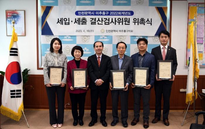 인천 미추홀구의회 배상록 의장은 4월 19일 2022 회계연도 세입·세출 결산검사위원을 위촉했다.이날 결산검사위원으로 위촉된 위원은 대표위원인 미추홀구의회 김영근 의원을 비롯해 세무사 김태웅 위원, 세무사 문성희 위원, 전 미추홀구 지방부이사관 정덕진 위원,