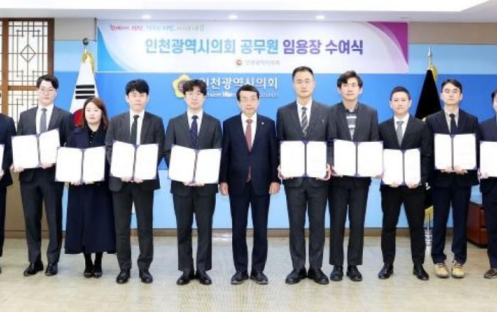 인천광역시의회(의장 허식)가 의원들의 의정활동을 지원하기 위한 정책지원 전문인력 채용을 마무리했다. 인천광역시의회는 14일 의장 접견실에서 정책지원관(일반임기제) 채용시험에 최종 합격한 11명에 대한 임용장을 교부했다. 이날부터 5개 상임위원회에 배치돼 근무를 시작했다