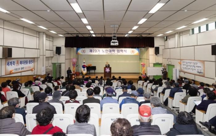 인천광역시 계양구 노인복지관 대강당에서 지난 14일 제23회 대한노인회 계양구지회 부설 노인대학 입학식이 개최했다고 밝혔다.이날 입학식에는 윤환 계양구청장, 김대기 대한노인회 계양구지회장, 조양희 계양구의회 의장, 정춘지 구의회 운영위원장, 신정숙 구의원, 유동수 국회