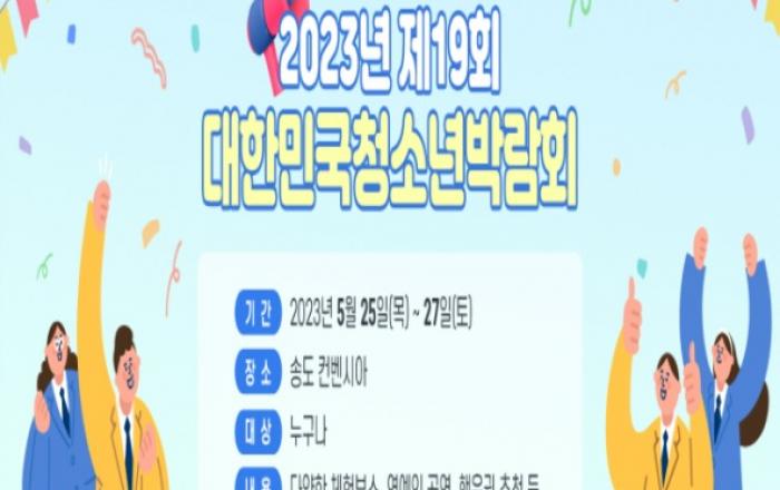 인천광역시(시장 유정복)는 5월 25~27일 3일간 송도 컨벤시아에서 ‘디지털 시대를 선도하는 글로벌 K-청소년’제19회 대한민국 청소년박람회를 개최한다고 밝혔다. 제19회 대한민국 청소년박람회는 여성가족부와 인천시가 공동주최하고, 한국청소년활동진흥원과 인천시청소년활동