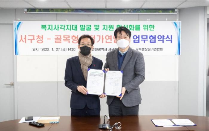 전국에서 가장 많은 17곳의 ‘골목형 상점가’를 지정한 인천 서구(구청장 강범석)가 골목상점 1,016곳과 위기가구 발굴에 힘을 모은다. 서구는 지난 27일 골목형 상점가 연합회(회장 곽도생)과 ‘복지사각지대 발굴·지원 활성화 업무협약’을 체결했다고 30일 밝혔다.