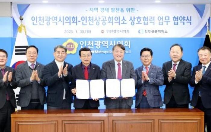 인천광역시의회(의장 허식)가 인천지역 경제침체 위기 극복 및 경제 발전을 위한 발판을 다졌다. 인천시의회는 30일 의장 접견실에서 허식 의장을 비롯해 한민수 의회운영위원장, 정해권 산업경제위원장, 인천상공회의소 심재선 회장 및 조상범·문완진 부회장, 박인서 상근부회장
