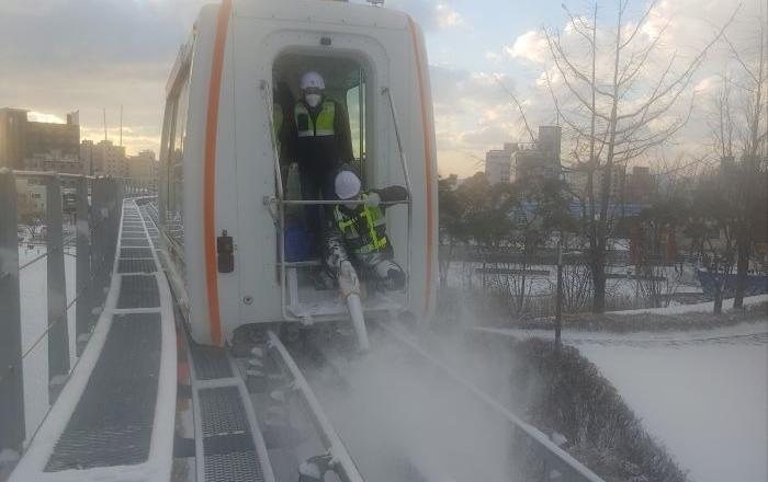 월미 바다 열차인천 등 중부지역을 중심으로 많은 눈이 내린 26일 오전 인천1호선 귤현차량기지와 인천1, 2, 7호선 68개 역사, 월미바다열차 등 각 사업장에서 고객의 안전을 위해 인천교통공사 직원들이 구슬땀을 흘리며 눈을 치우고 있다.