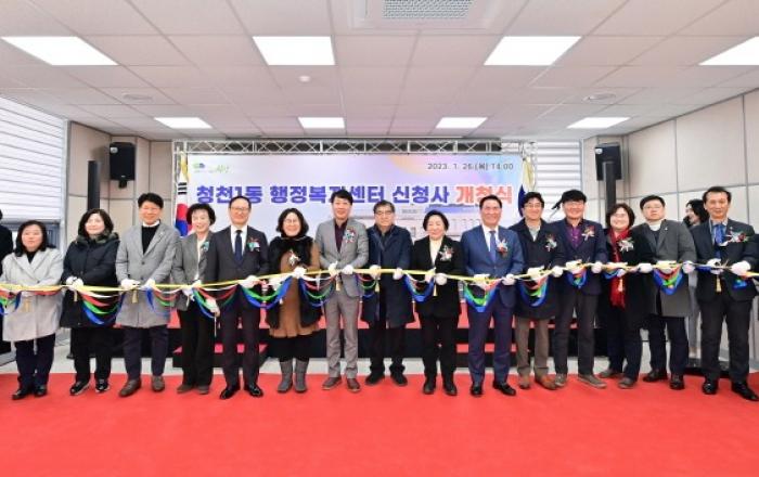 부평구(구청장 차준택)는 지난 26일 산청로 119 일원에서 ‘청천1동 행정복지센터 신청사 개청식’ 행사를 진행했다.고 밝혔다. 이날 행사에는 차준택 구청장과 지역 인사, 주민 등 60여 명이 참석했으며 기념식과 현판제막식, 청사 둘러보기 순으로 진행됐다.이번에 개청한