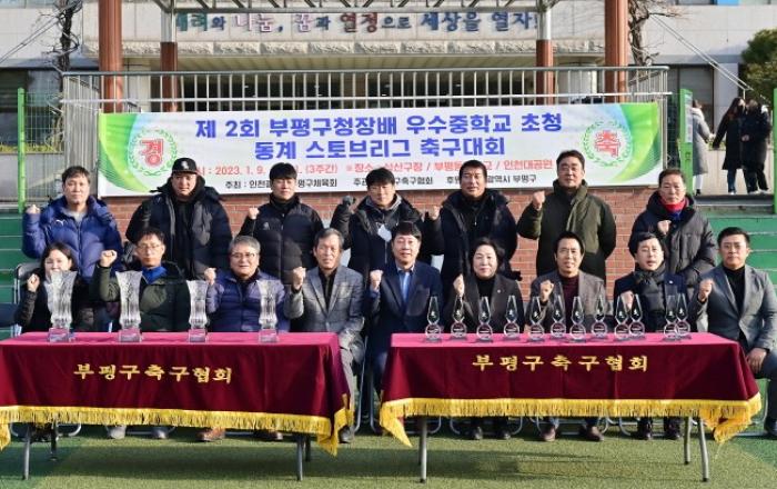 부평구(구청장 차준택)가 9일부터 오는 31일까지 삼산월드체육관과 부평동중학교 축구장 외 3개 구장에서 제2회 부평구청장배 전국 우수중학교 동계 스토브리그 축구대회를 진행한다.이번에 초청된 팀은 전국대회 우승 경력이 있는 축구 강호 팀들이다. 또 상호 기량 향상을 목표