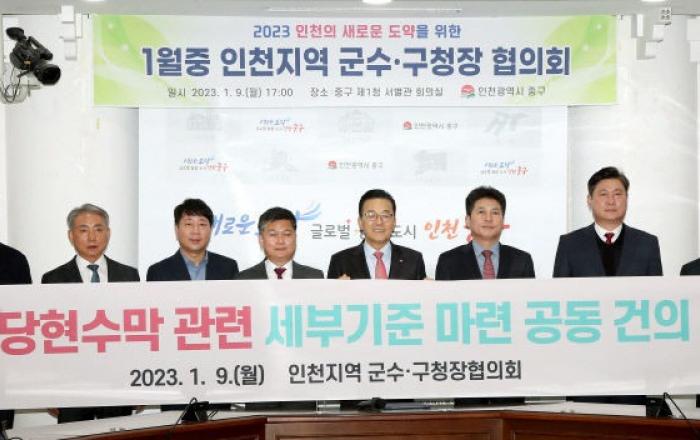 인천시 중구(구청장 김정헌)는 9일 중구청 서별관 회의실에서 인천지역 군수·구청장, 인천시 정무부시장 등이 참석한 가운데 '2023년 1월 민선8기 인천지역 군수·구청장 협의회'를 개최했다고 밝혔다.그동안 협의회에서는 당면현안사항 해결을 위한 심도 있는 논의를 하며 시