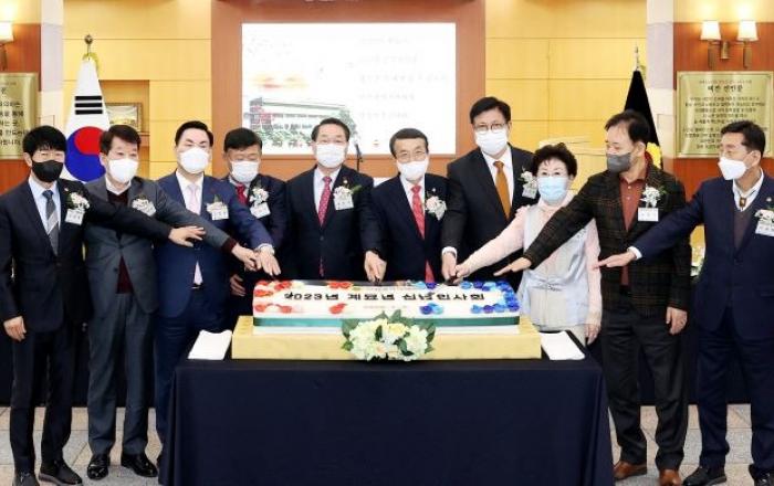 인천광역시의회(의장 허식)가 계묘년(癸卯年) 새해를 맞아 시민이 행복한 의정 구현을 다지는 자리를 마련했다.인천시의회는 2일 의회 본관 1층 중앙홀에서 허식 의장을 비롯해 유정복 인천시장, 도성훈 인천시교육감, 박창규 의정회장, 이봉락·박종혁 제1·2부의장, 시의원,