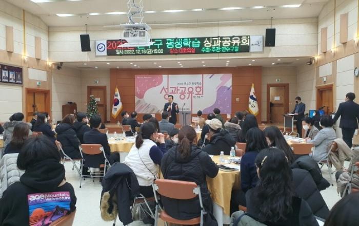 연수구(구청장 이재호)는 지난 16일 오후 3시 연수구청 대회의실에서 ‘2022년 연수구 평생학습 성과공유회’를 개최했다.연수구 평생학습 성과공유회는 평생교육기관·단체, 학습동아리, 자원활동가 등이 참여하여 한 해 동안의 평생학습 성과를 공유하고 서로 격려하는 자리로