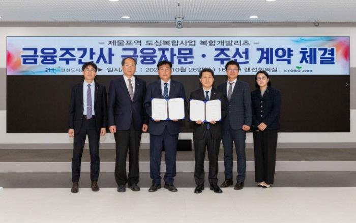 인천도시공사(iH)는 '제물포역 도심 공공주택 복합사업 개발리츠'의 성공적 추진을 위해 10월 26일 교보증권㈜과 금융 주선 및 자문 계약을 체결했다고 밝혔다.iH는 지난 9월 '제물포역 도심공공주택 분양·임대 혼합형 복합개발리츠'의 금융주선 업무 등을 수행할 금융주간