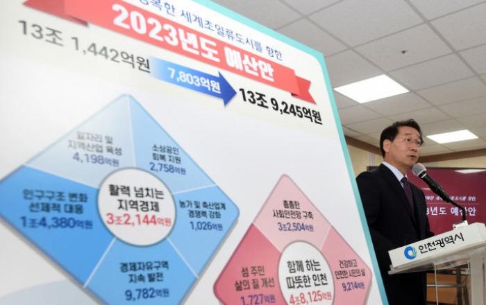 인천시(시장 유정복)는 민선8기 출범 후 첫 번째 본예산인 2023년도 예산안을 13조 9245억원으로 편성해 오는 11월 3일 시의회에 제출할 예정이라고 27일 밝혔다.내년도 본예산안 규모는 올해 본예산(13조 1442억원) 대비 7803억원(5.9%) 증가한 것으로