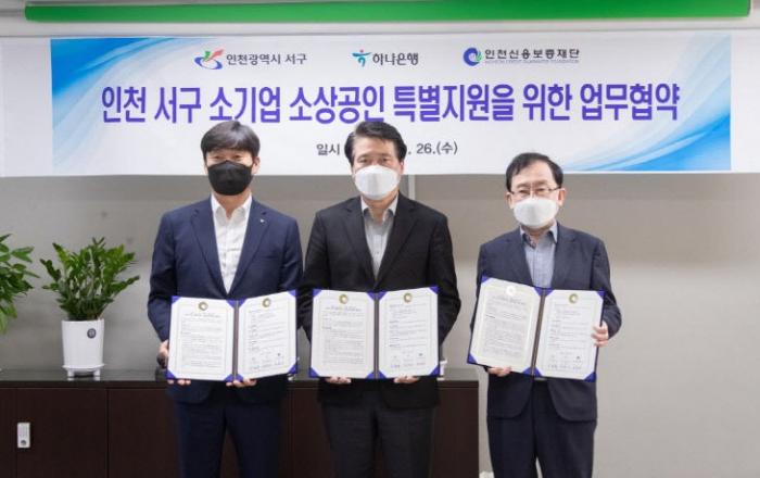 인천시 서구가 고물가·고금리로 침체된 지역경제를 살리고 관내 소상공인 지원을 위해 구 금고인 하나은행, 인천신용보증재단과 손을 맞잡았다.서구는 지난 26일, 하나은행과 인천신용보증재단 관계자가 함께한 가운데 소기업·소상공인 금융지원을 위한 '소상공인 특별지원 협약보증
