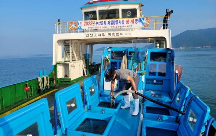 인천시 옹진군(군수 문경복)은 어업인의 소득증대와 꽃게 자원 회복·증강을 위해 9월 29일(목) 대이작·소이작 해역에 어린 꽃게 약45만마리를 방류했다고 밝혔다. 금번 방류에는 해당지역 어촌계장 및 어업인들의 입회하에 대이작 해역에 22.5만마리, 소이작 해역에