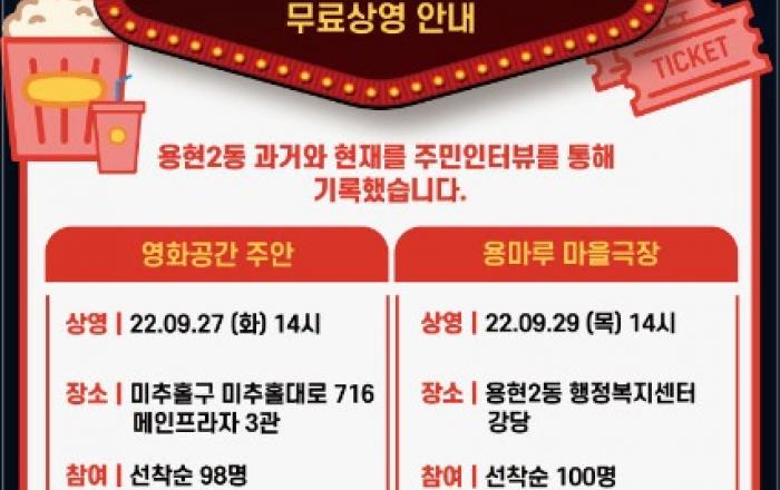 인천도시공사(iH) 비룡공감2080 도시재생현장지원센터가 미추홀구 용현2동의 과거와 현재를 주민인터뷰를 통해 기록한 '용현2동 다큐멘터리'를 무료로 상영한다.이 다큐멘터리는 일제강점기, 산업화시대를 거치며 수인선과 함께 변화해온 용현2동의 모습과 마을에서 살아가는 주민
