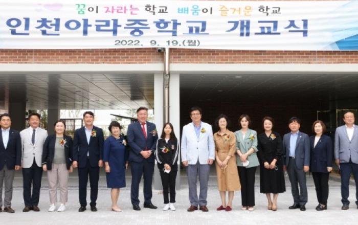 인천광역시의회 교육위원회(위원장 신충식)는 올해 3월 문을 열고 19일 개교식을 가진 인천아라중학교를 찾아 개교를 축하했다.이날 개교식에는 신충식 교육위원장과 도성훈 교육감을 비롯해 학교운영위원회 위원 등 많은 내빈들이 참석했다.인천아라중은 검단택지개발사업에 따른 검단