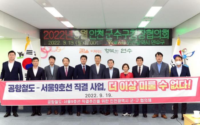 19일 열린 인천지역 군수·구청장 협의회에서 10개 군·구의 동의로 '공항철도-서울9호선 직결의 조속한 추진을 위한 인천광역시 군·구 협의체'가 출범했다.'공항철도-서울9호선 직결 추진을 위한 인천광역시 군·구 협의체(이하 협의체)'는 상임위원장 중구청장(김정헌), 공