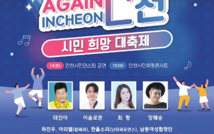 인천광역시가 오랜 시간 동안 팬데믹 상황을 이겨 내온 인천시민들에게 위로의 메시지를 전하기 위한 'AGAIN 인천! 시민희망대축제'를 개최한다.인천시는 오는 24일 인천문화예술회관에서 K-POP댄스, 벨리댄스, 라틴댄스로 구성된 시민댄스팀 공연을 시작으로 태진아. 이솔