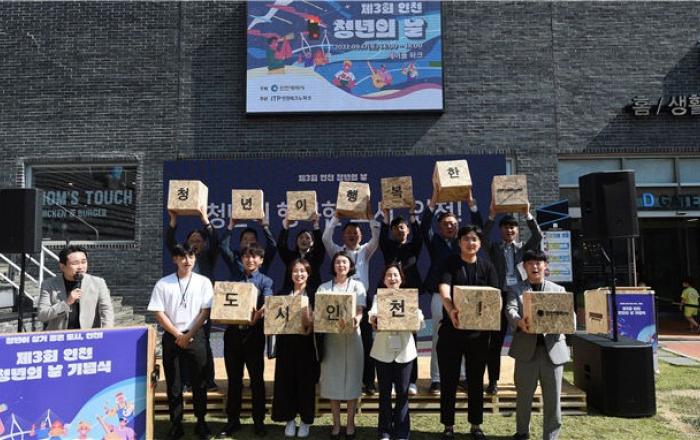 인천시는 17일 송도 트리플스트리트 너울가지 공원에서 '제3회 인천 청년의 날'기념식을 개최했다고 밝혔다.이날 행사는 기념식을 시작으로 이행숙 인천시 문화복지정무부시장의 축사와 청년정책 유공인 표창 및 기념식 선포 퍼포먼스 외에도 다양한 홍보부스와 이벤트존, 청년예술인